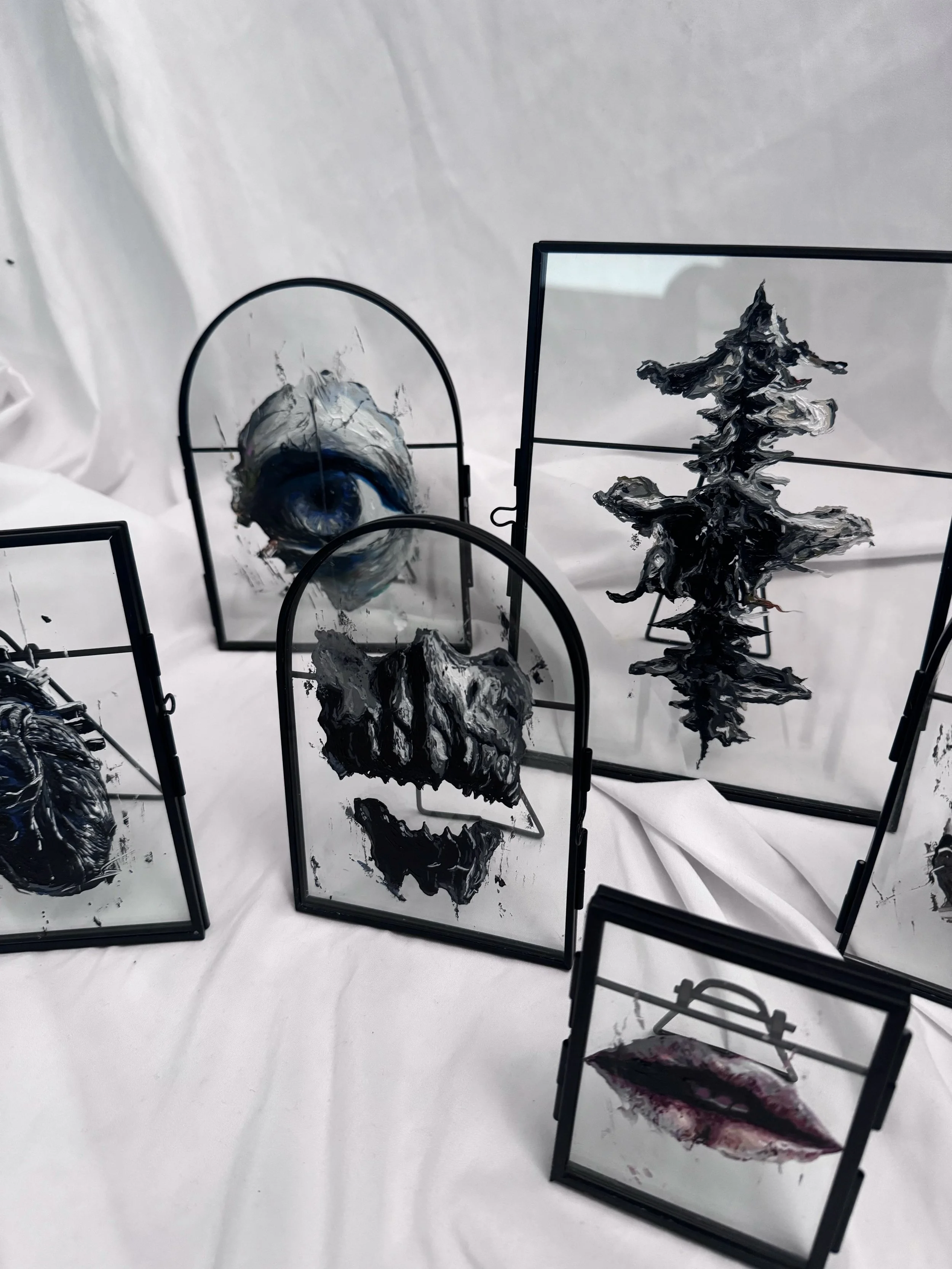 Mini originals pictured together in art studio - April 2024