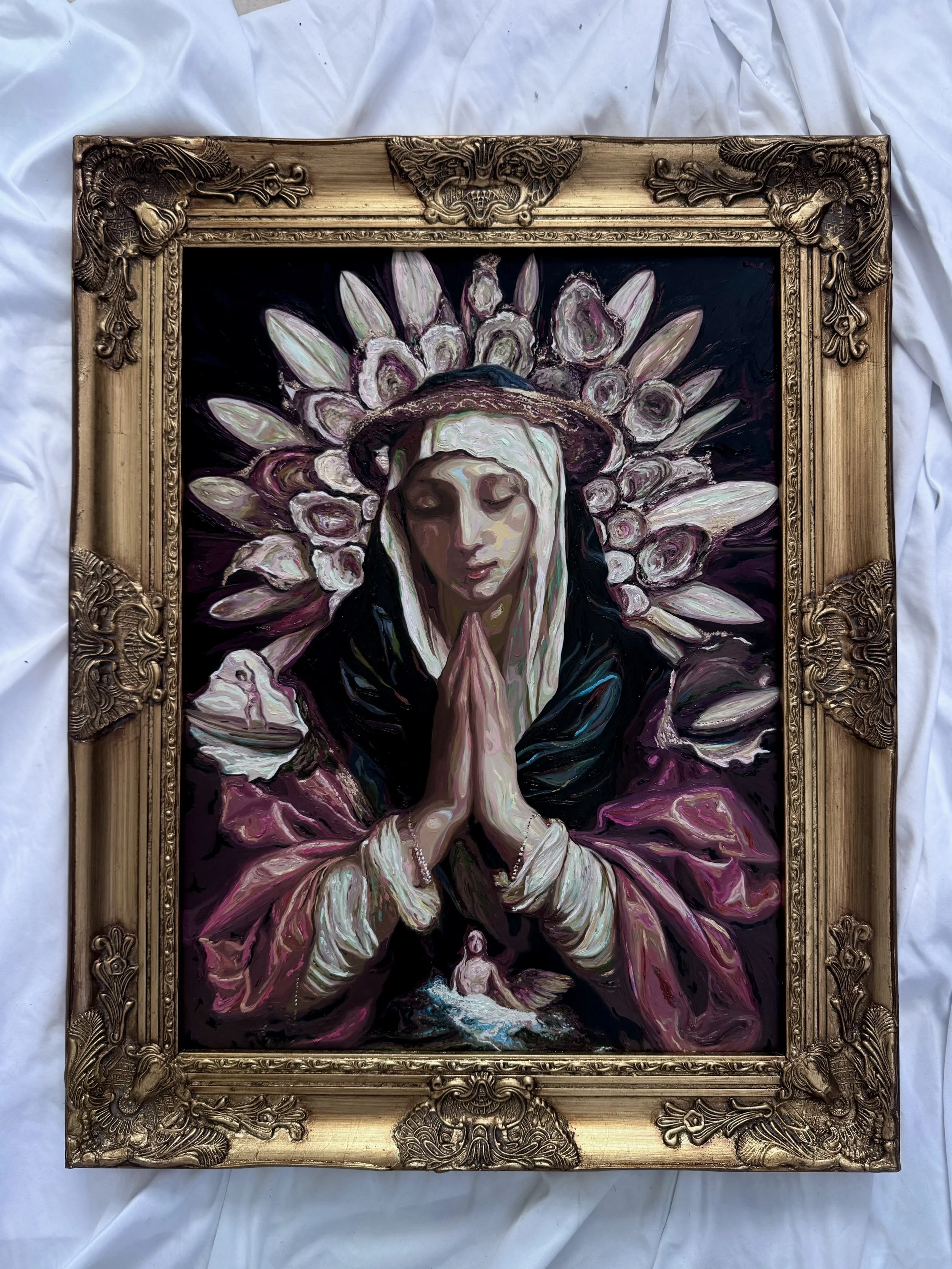 Oil on glass. Framed.
