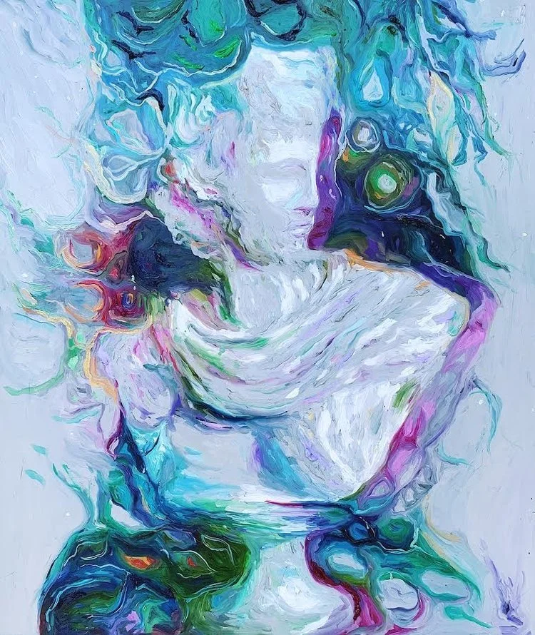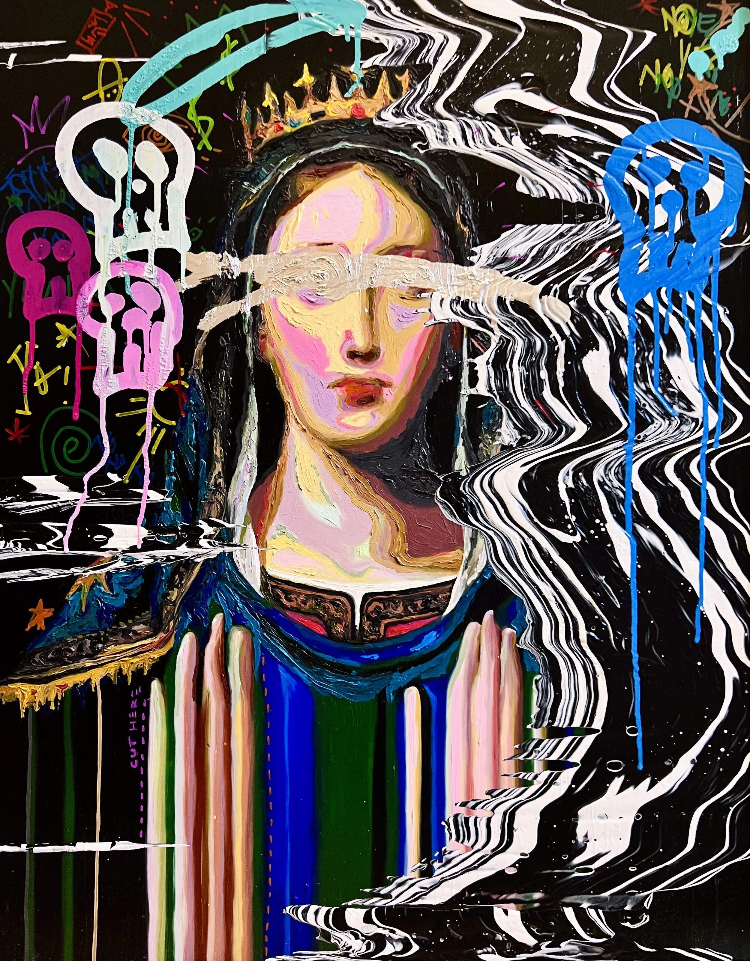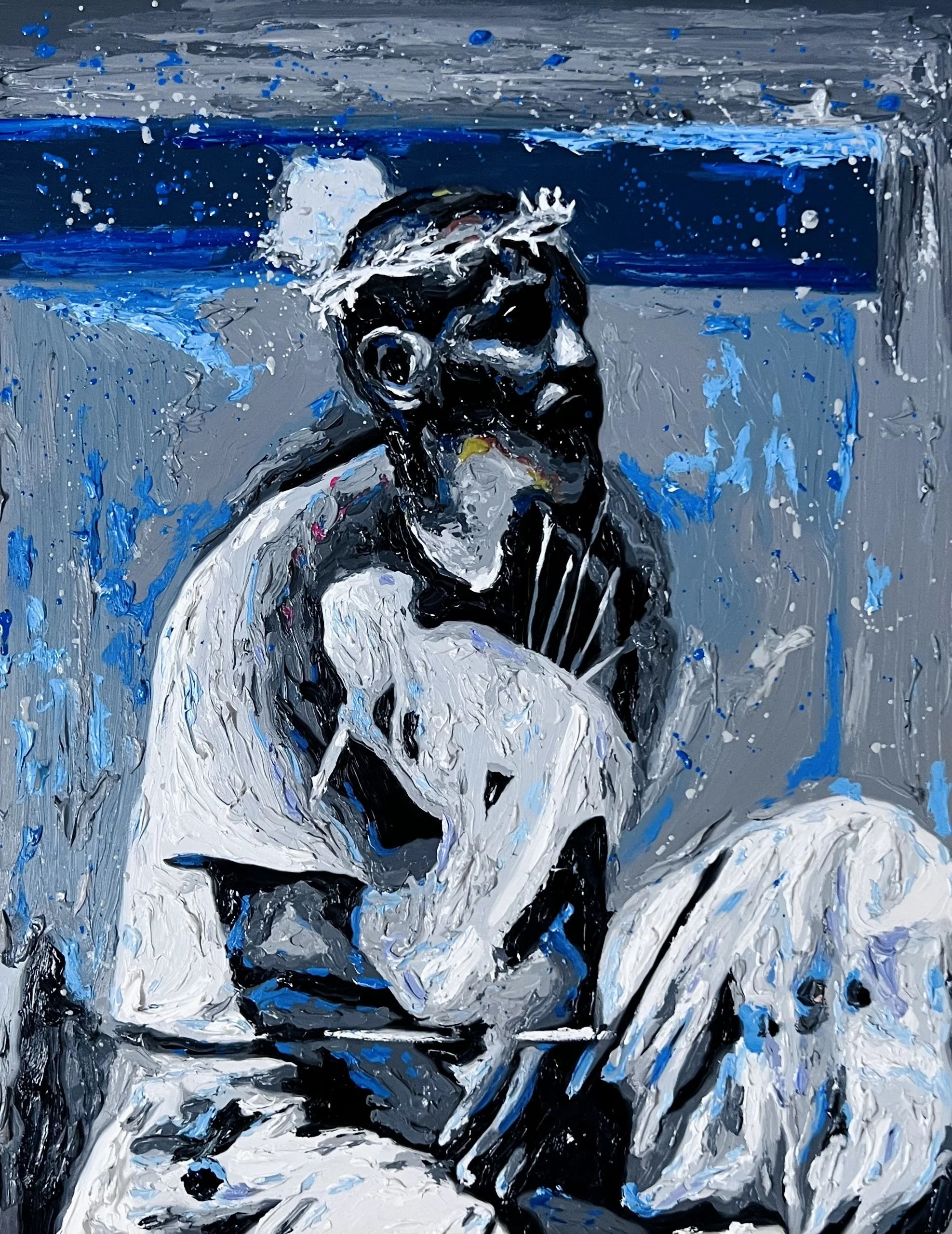 Welcome to the dark, psychological realm of contemporary impressionism that is Jesusjoints. Through mind-bending perspectives on religious themes, this work captures the divine chaos of reality, instilling a spectrum of emotions that challenge conventional interpretations of beauty. Vibrant oil paints, thick brushstrokes, and dynamic mixed media converge to create a uniquely visceral experience, igniting a sense of mental warfare within the viewer.