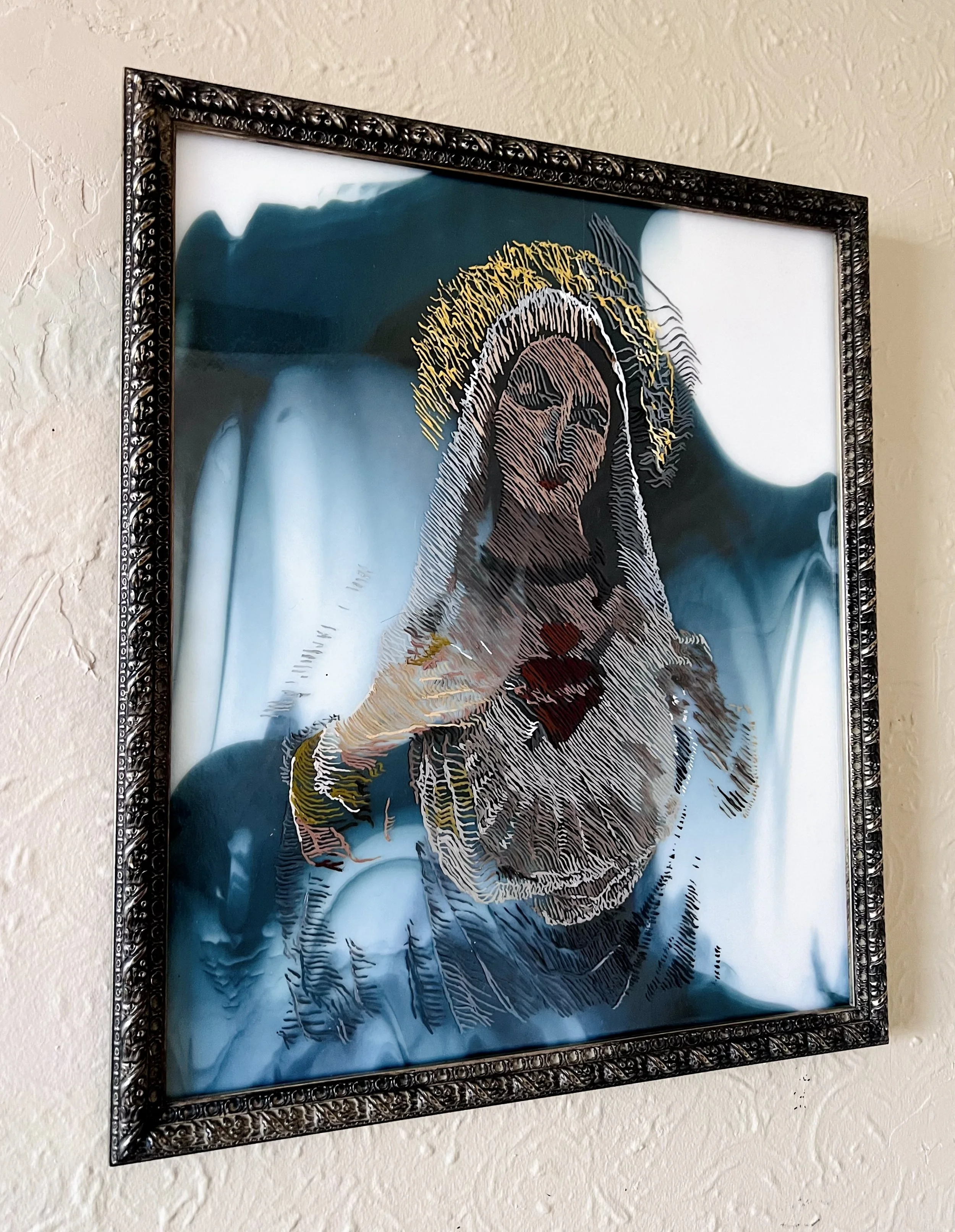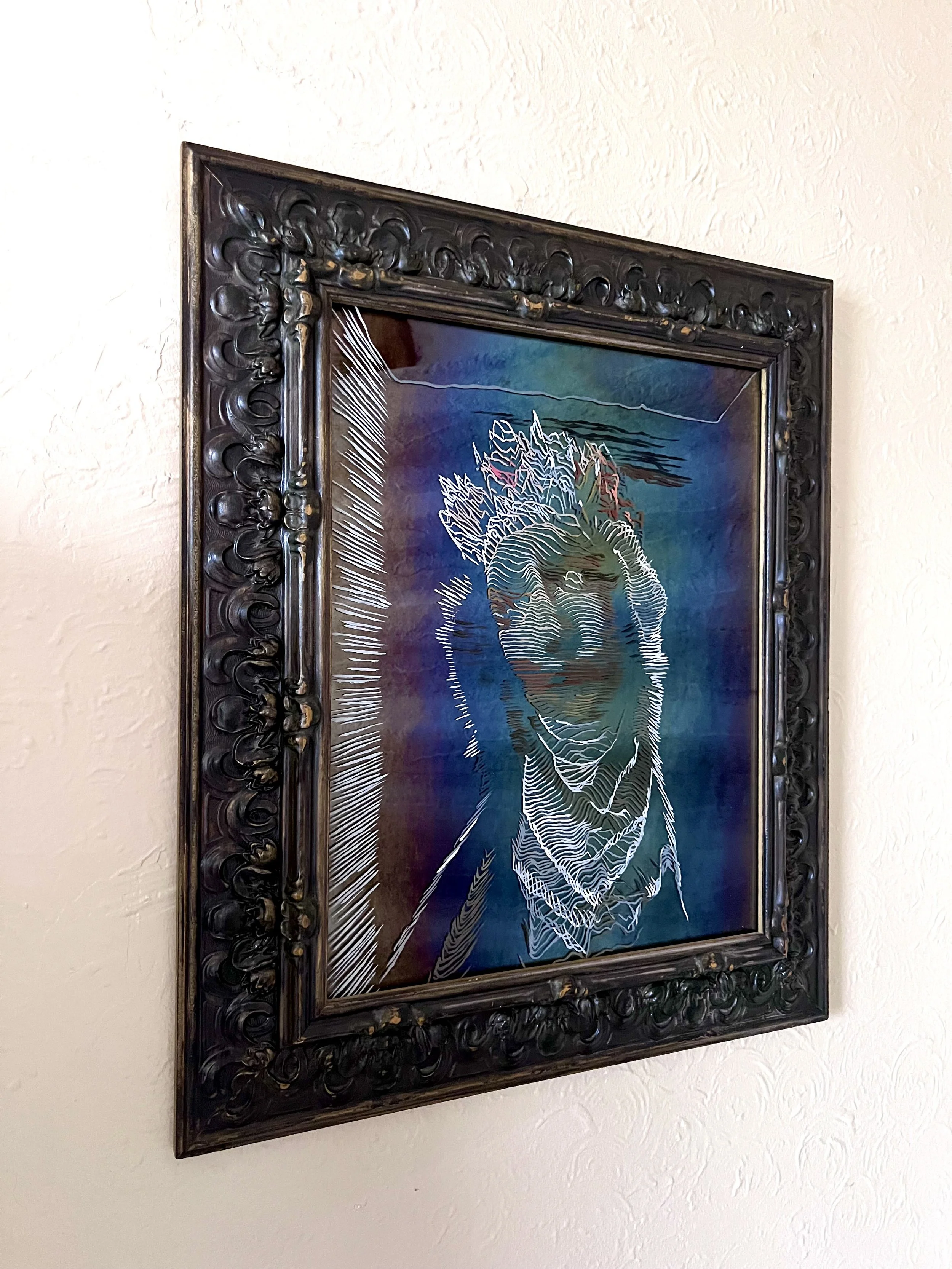 The primary medium—framed glass panels—goes beyond ergonomic appeal. Glass serves as a profound metaphor for the art’s themes: its fragility mirrors the delicate nature of belief systems and concepts, capable of shattering like reality itself if not handled with care. These pieces become tangible reflections of the human psyche, inviting contemplation and connection.