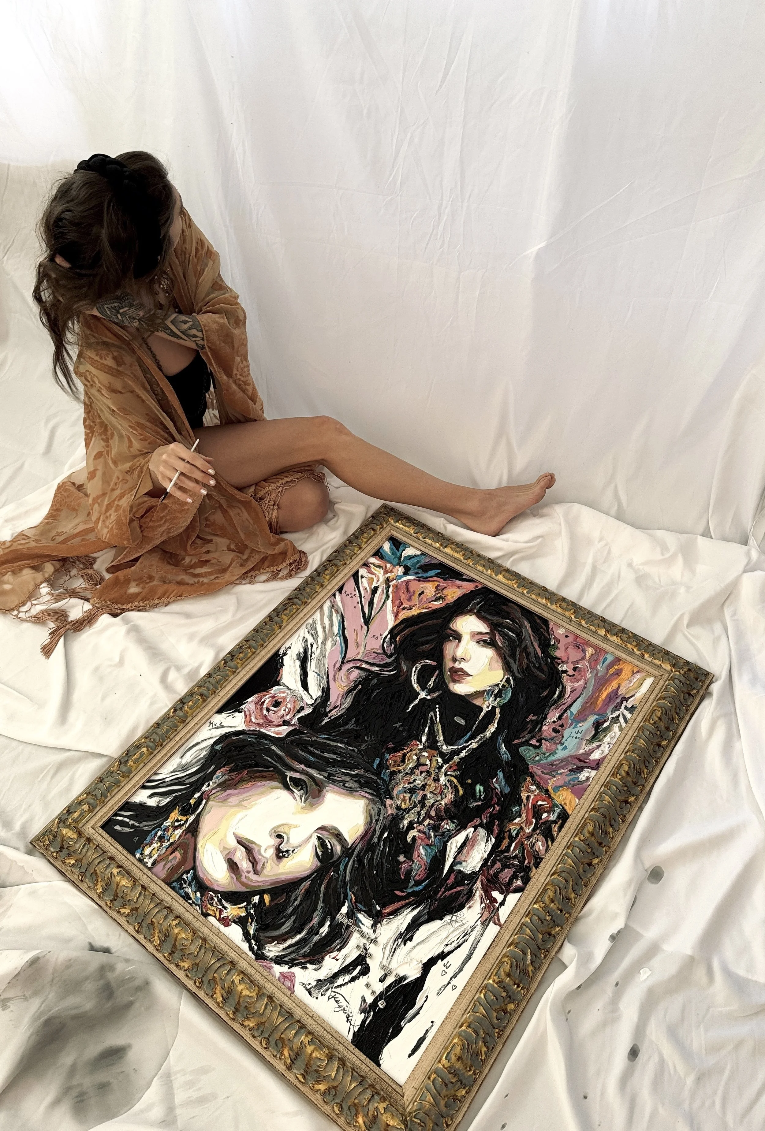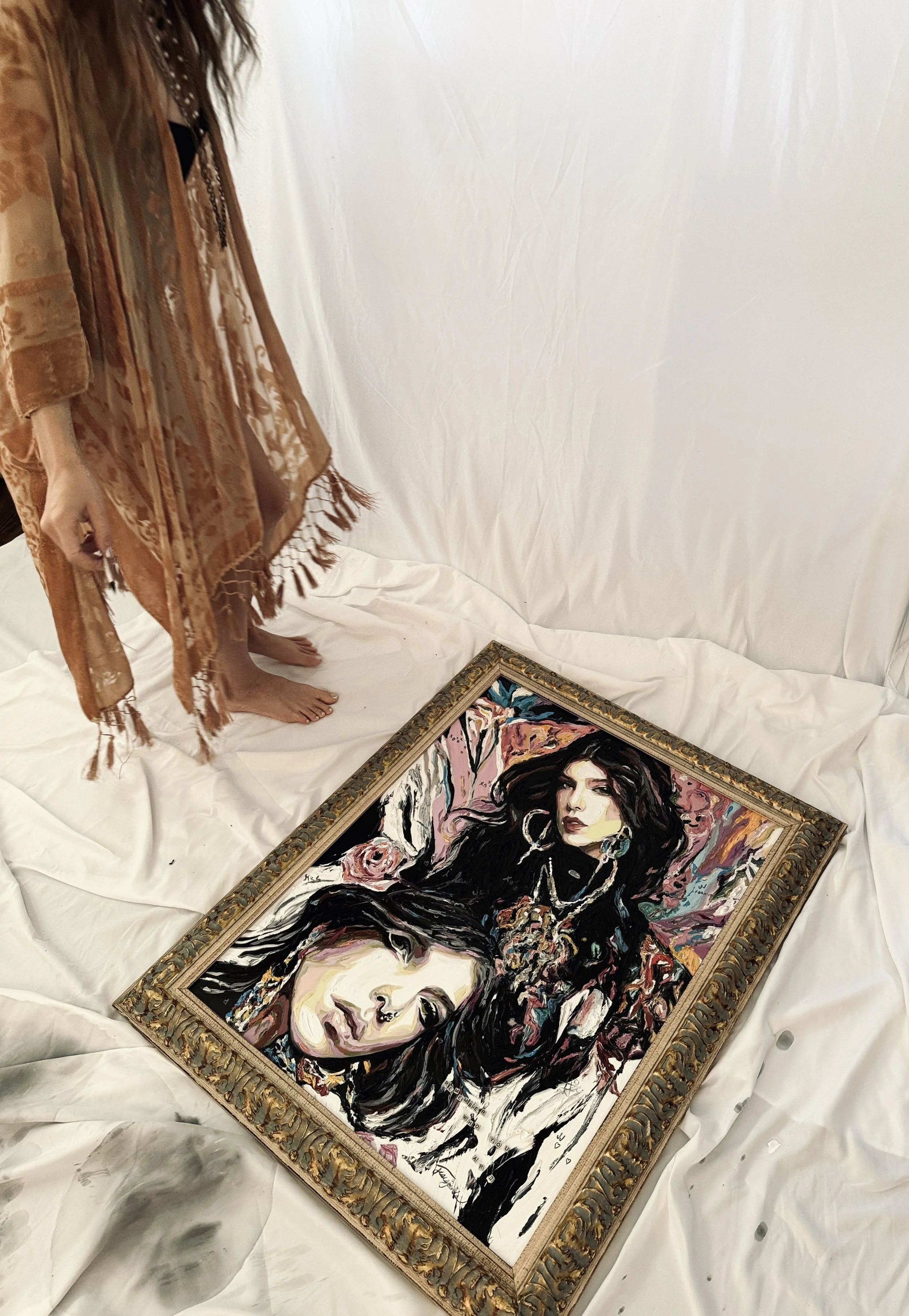 I can see in this painting that I was trying to do more for myself. The colors, the intricacies in the brushstrokes, and the choice to portray myself in a more empowered light all speak to that desire for change. The ornate frame surrounding the painting feels almost regal, like I was trying to wrap myself in something precious, something valuable—because deep down, I wanted to remember that I was worth the effort.
