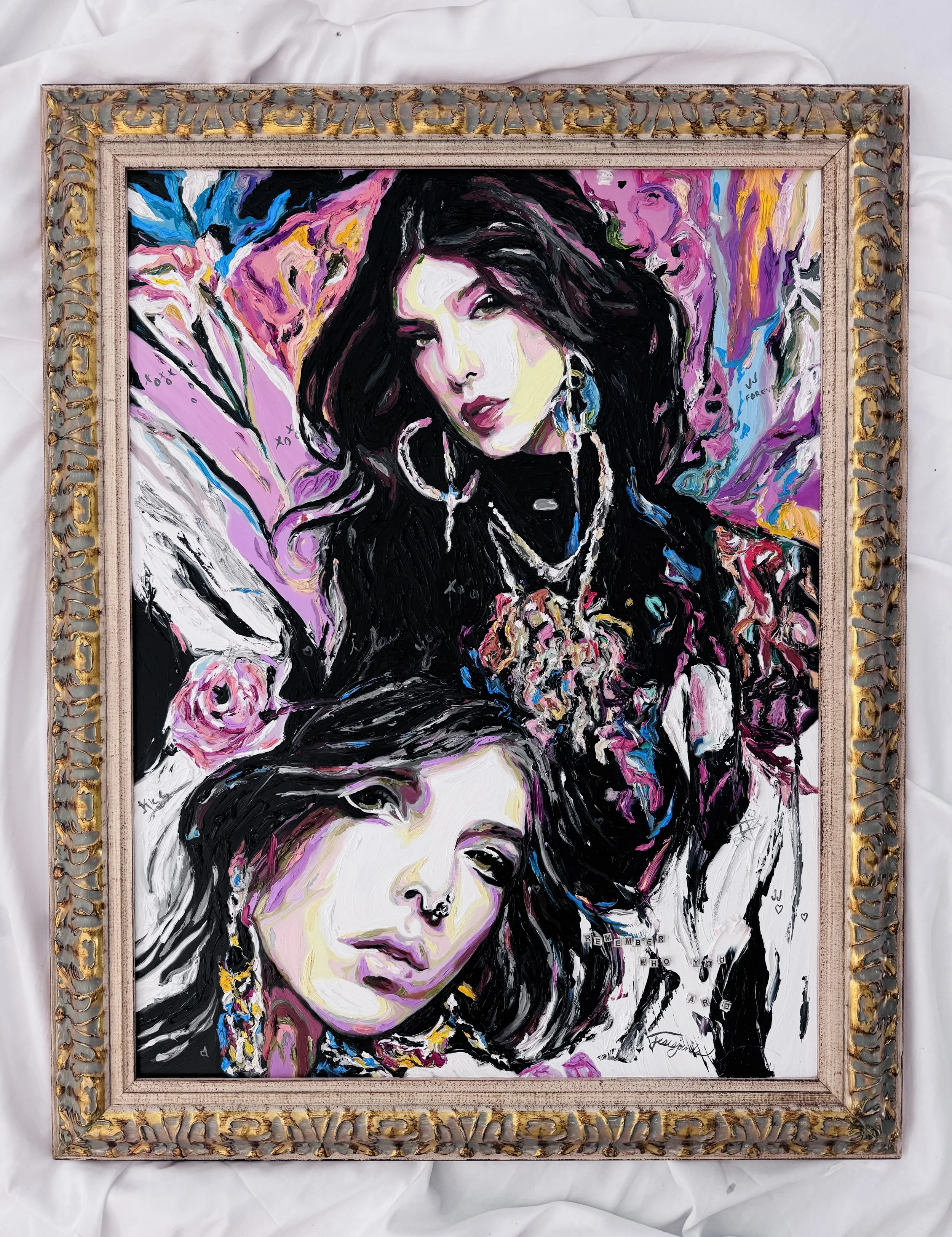 At the time, I felt ugly—both inside and out. My self-worth was buried so deep that I couldn’t even recognize the person I was anymore. This painting wasn’t just an artistic exercise—it was my way of reminding myself who I was. It was a declaration to myself that I was still here, still capable of creating something beautiful, even when I didn’t feel that way. The duality in the two faces reflects that struggle—one face looking forward, determined to reclaim my sense of self, while the other stares ahead, still lost in the mess of emotions I was carrying with me.